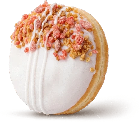 Пончик с вишнёвой начинкой и творожным кремом, украшен сублимированной клубникой и посыпкой сухарики
